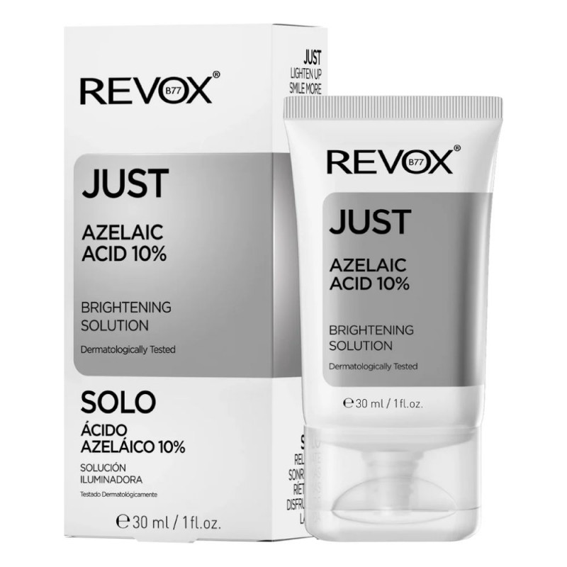 REVOX B77 just azelaic acid 10%, cible efficacement les bactéries responsables de l'acné, aidant à réduire les imperfections et à lisser la surface de la peau. Ses propriétés éclaircissantes atténuent l'apparence des taches sombres et des signes de vieillissement, laissant le teint plus uniforme et lumineux. Idéal pour les peaux mixtes, grasses, sujettes à l'acné, ou présentant des imperfections, taches pigmentaires et cicatrices d'acné.