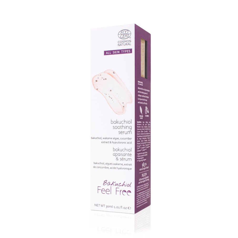 Ce sérum apaisant au Bakuchiol possède une texture gel. Sa formule contient du Bakuchiol et de l'extrait de Wakame qui aide à réduire l'apparence des rides et des lignes d'expression. Sa teneur en extrait de concombre décongestionne le visage et rafraîchit.